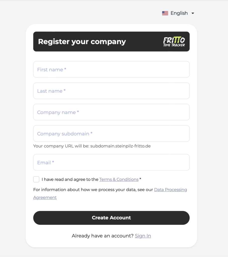 After registering, you’ll receive an email. Open your inbox and set your personal password for your Fritto account — and your account is ready to use.